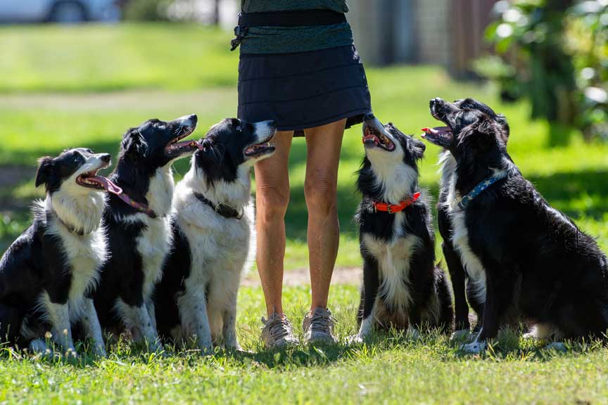 At Game on Dogs, we've got a tight team of 6 diligent border collies and 2 awesome cats who handle all the training, quality control, and customer service. And don't you worry, any leftover tasks are smoothly managed by one human who totally appreciates your patience and understanding!