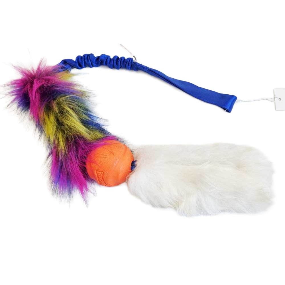 Chuckit ball with Faux fur & Sheepskin tail bungee tug