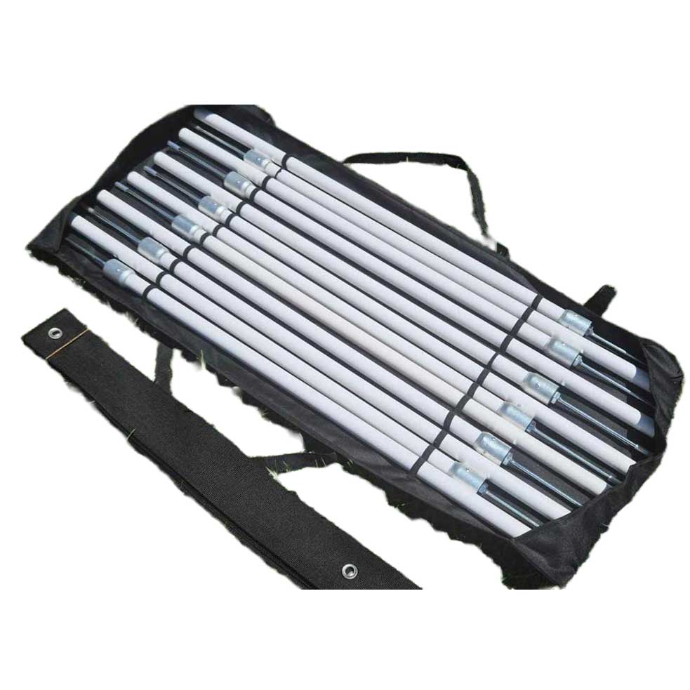 12 poles available in a convenient carry bag plus a spacing guide tape to make setting up the weave poles a breeze.
