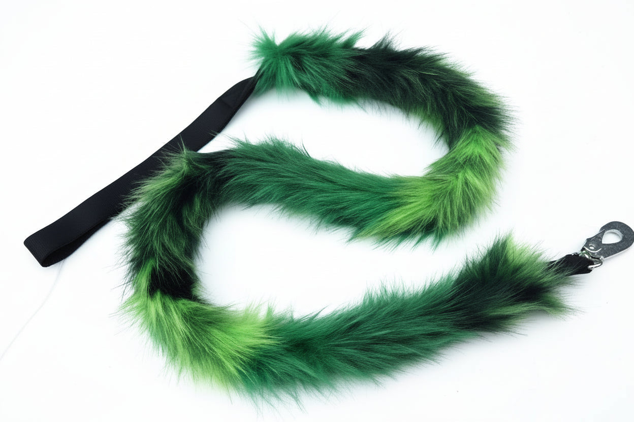 A Faux Fur tug leash (120 cm) with a long tug part, 90 cm soft faux fur in bright colors!