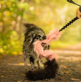 • Our toys are made for active play between dog and trainer, they are not made to let the dog lie down and chew on.