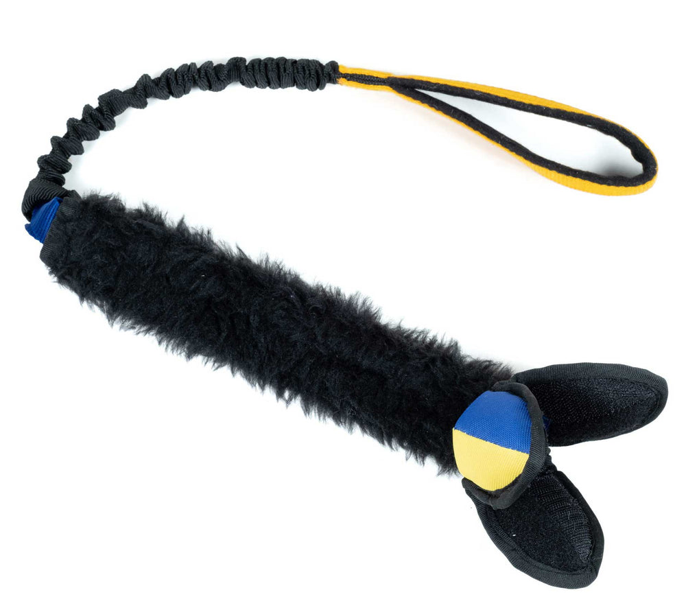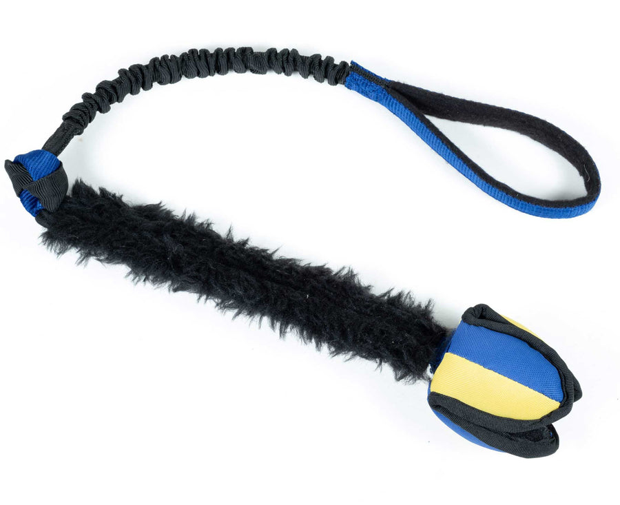 A brand new design. A faux fur bite area with a treat pod-ball attached to the end. The lo-ball can be filled with tasty treats offering additional motivation and reward, and the long faux fur bite area is the perfect size and shape for the dog to bite hold of and start encouraging a game of tug.