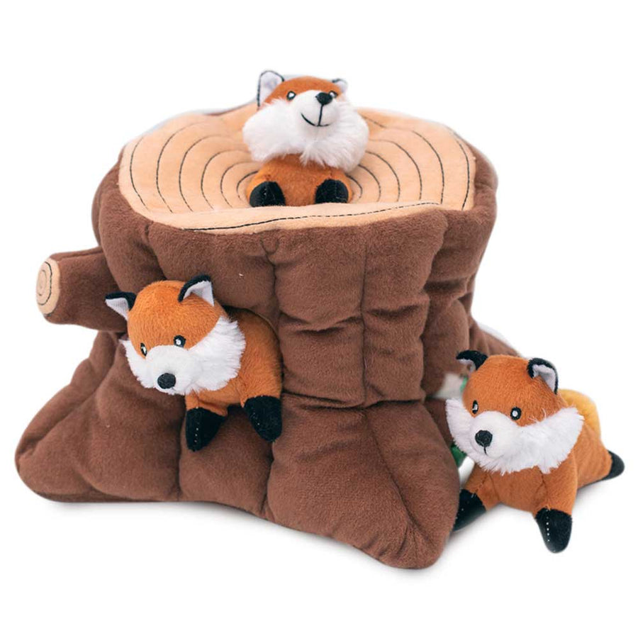 Zippy Burrow Interactive Dog Toy - Fox Stump + 3 Foxes