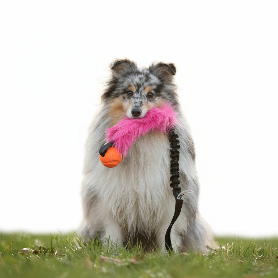 Faux fur Treat Pouch with Chuckit ball and full bungee handle