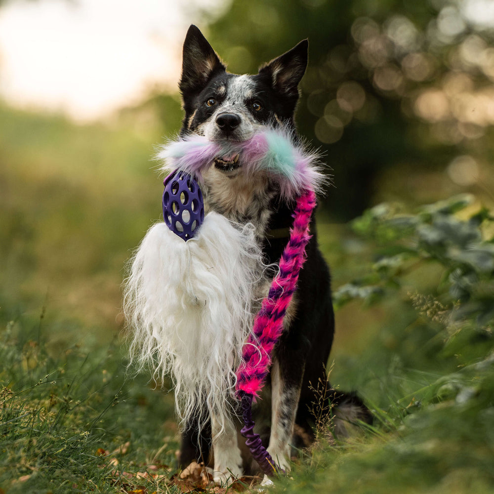 Chuckit Breathe Right ball with Raccoon Tail Bungee Tug