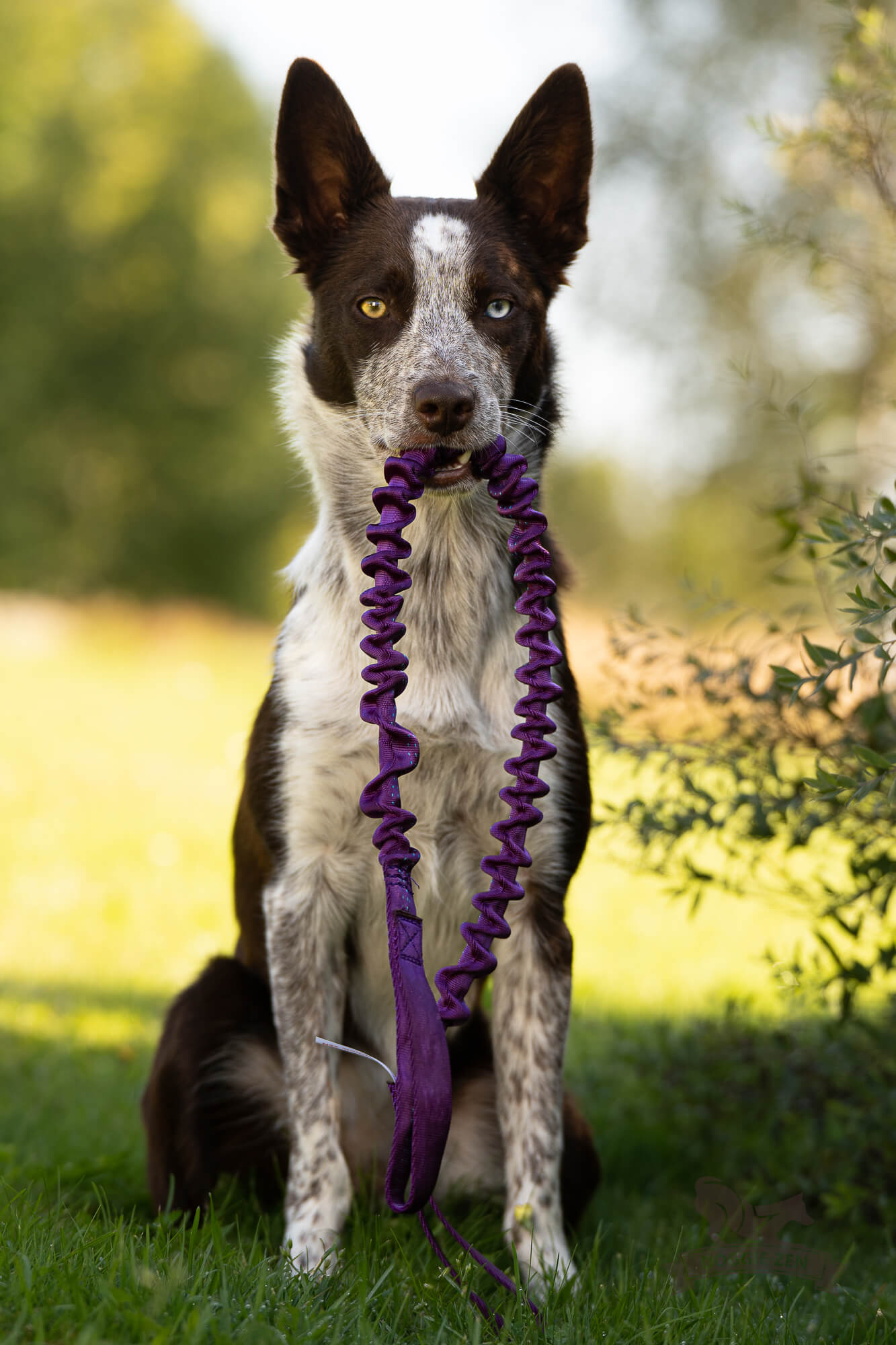 With our bungee handles you can teach your dog to love to tug. The toy both has a handle for you to hold and a loop to attach your dog's favorite toy.