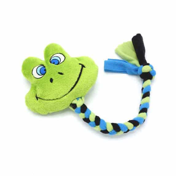 Frog with fleece braided tail is perfect motivational toy for your dog!