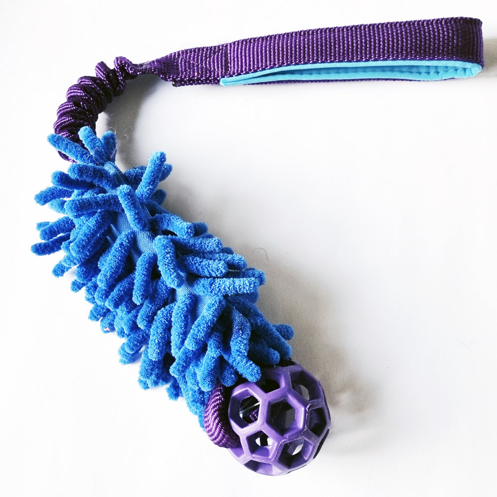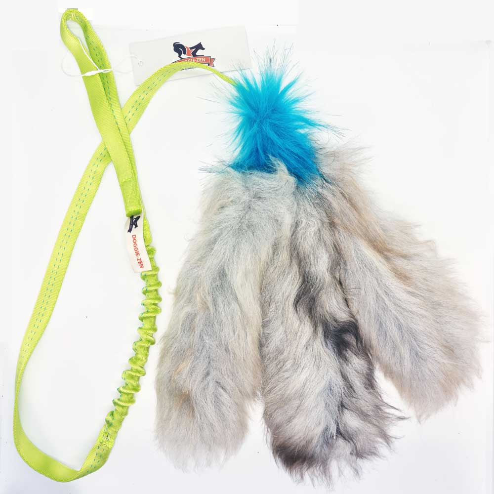 Chuckit Breathe Right ball with Raccoon Tail Bungee Tug
