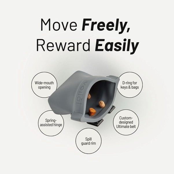 There are dozens of treat pouches on the market, but Viola s is the only design crafted from the highest-quality silicone with a spring-assisted mechanism for easy opening and closing. Every detail has been meticulously engineered—from a wide-access opening for speedy treat delivery to a sturdy, stay-put belt for hands-free training. We also carefully considered its slim, sleek profile—which makes it highly wearable without being cumbersome in the slightest. We’re confident you’ll love it after your first try.